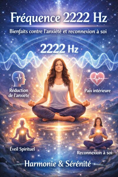 La Fréquence 2222 Hz est le son de la Renaissance, un puissant message de l’Univers vous invitant à revenir à votre origine et à embrasser votre vrai moi plein de potentiel. Cette fréquence, chargée de l’Amour de l’Univers, est la clé pour harmoniser votre énergie, éveiller votre Divinité intérieure et résoudre les problèmes de votre vie en vous connectant aux dimensions supérieures. Elle vous offre un nouveau départ, vous aidant à lâcher le passé et à accroître votre conscience pour manifester l’abondance et les miracles. Rappelez-vous que votre détermination est le catalyseur de votre destin. Commencez dès aujourd’hui à utiliser 2222 Hz pour retrouver votre vraie vie et réaliser tous les souhaits qui sont en alignement avec votre essence la plus pure.